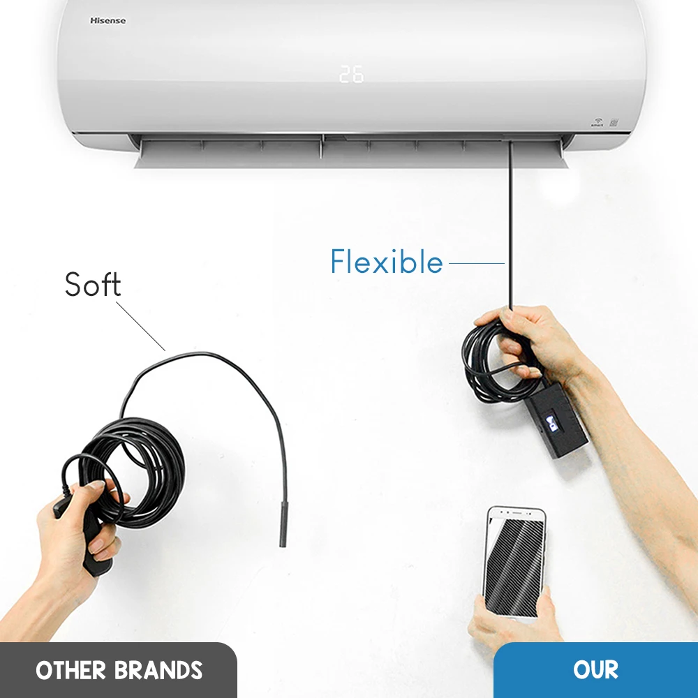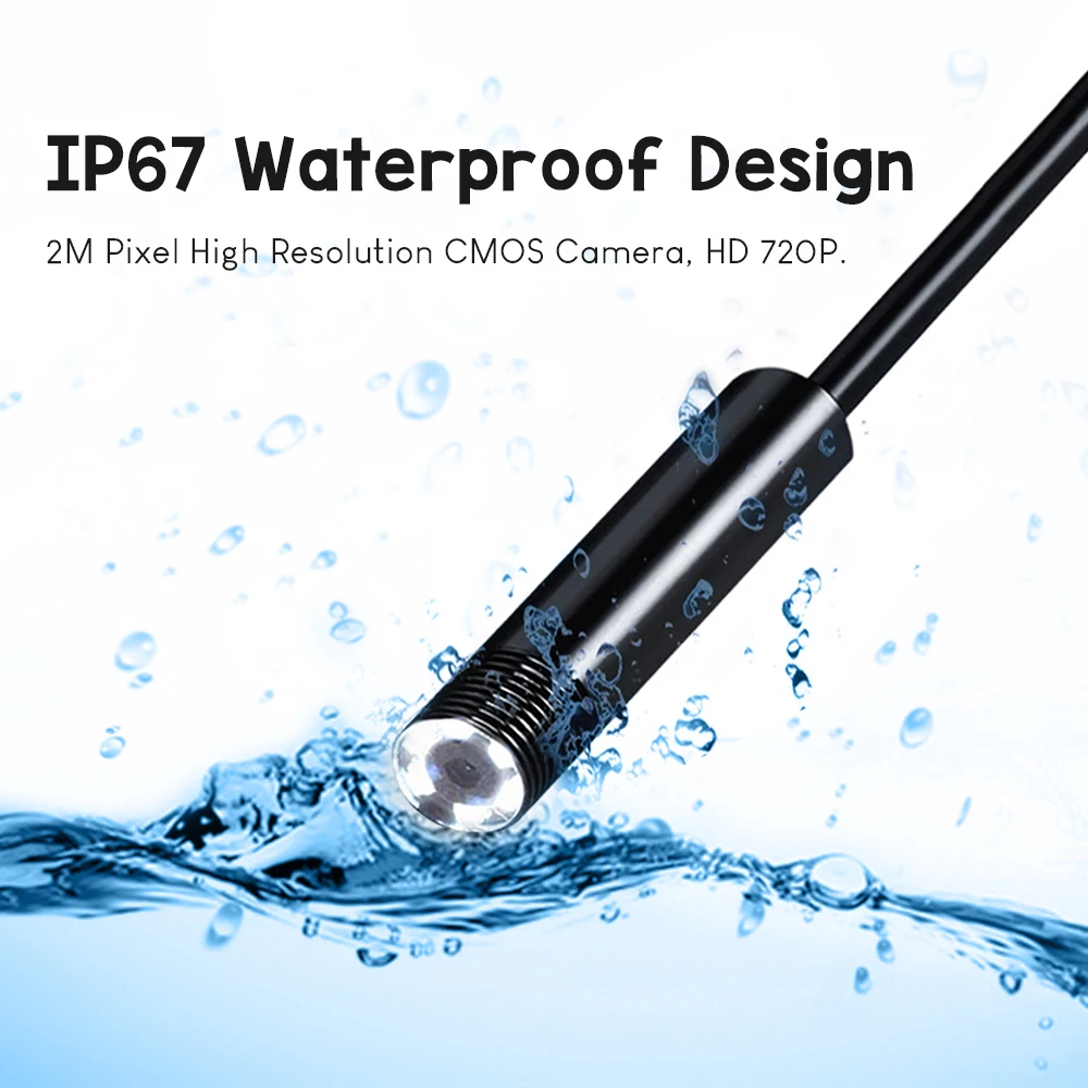 Brief introduction : Latest Arrival Model for Android,can take Photo,video and Sound recording, and the photos & video file will directly stored in your Android mobile phone, the whole process of record check, convenient observation and follow-up analysis.There's also a turning wheel used for adjust the brightness of six LED lights so that work in some area without enough light. It is IP67 Waterproof Camera. With a MICRo to USB line, It can also be used for computers.