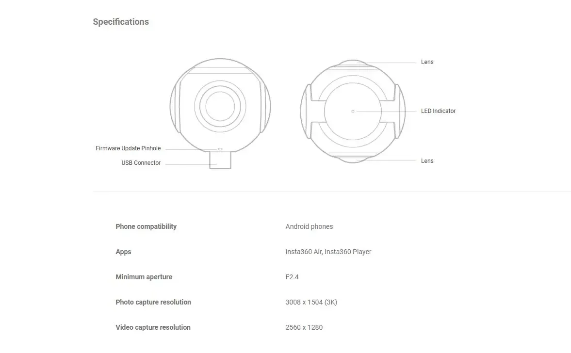 360 Livestreams / 2K Video / 3K Photo / Micro USB Connector